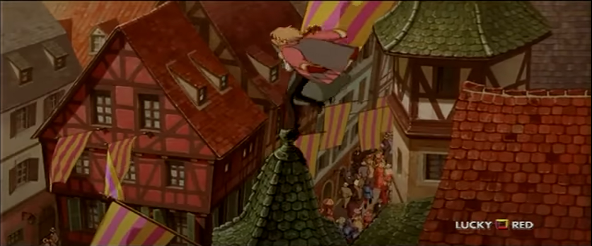 Il castello errante di Howl è un film d’animazione del 2004, diretto da Hayao Miyazaki e basato sull’omonimo romanzo di Diana Wynne Jones. Quando Sophie, una giovane ragazza che gestisce il negozio di cappelli del padre, viene aggredita da alcuni gendarmi, il mago Howl la salva. È allora che la Strega delle Lande Desolate, bramosa di ottenere il cuore dell’affascinante mago e gelosa di Sophie, la trasforma in un’anziana signora. La ragazza, a cui è proibito rivelare la sua vera identità, parte in cerca della strega e si imbatte nello spaventapasseri Testa di Rapa, che la conduce allo stravagante castello di Howl. Qui, il demone del fuoco Calcifer chiede a Sophie di spezzare l’incantesimo che lo lega al castello, offrendole in cambio di riportala al suo vero aspetto.