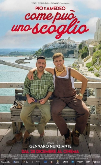 Come può uno scoglio, film diretto da Gennaro Nunziante, racconta come Pio (Pio D'Antini), un ragazzo impacciato e con un carattere per nulla forte, in seguito alla morte del padre Salvatore, erediti la gestione di diverse attività. Il genitore era un ricco costruttore che nel corso della sua vita ha sempre scelto per il figlio e lo sta facendo anche da defunto.